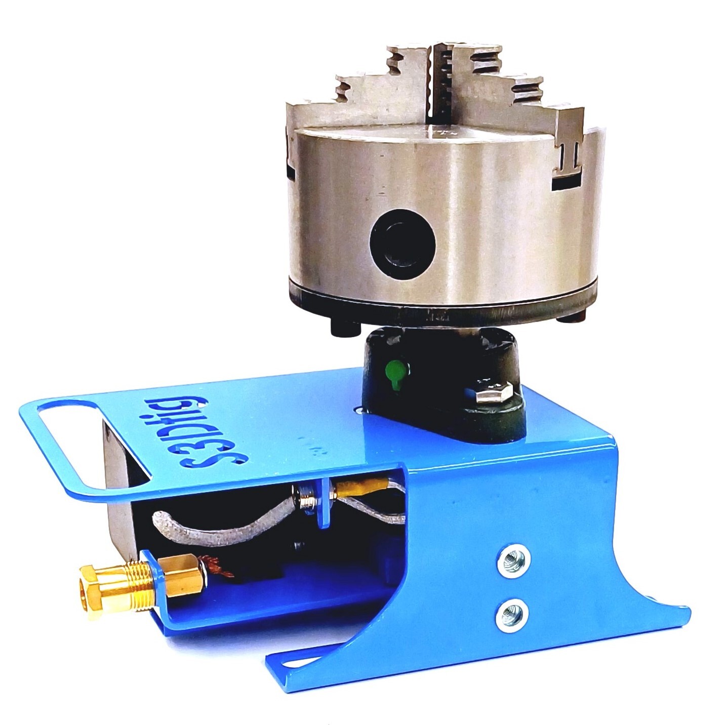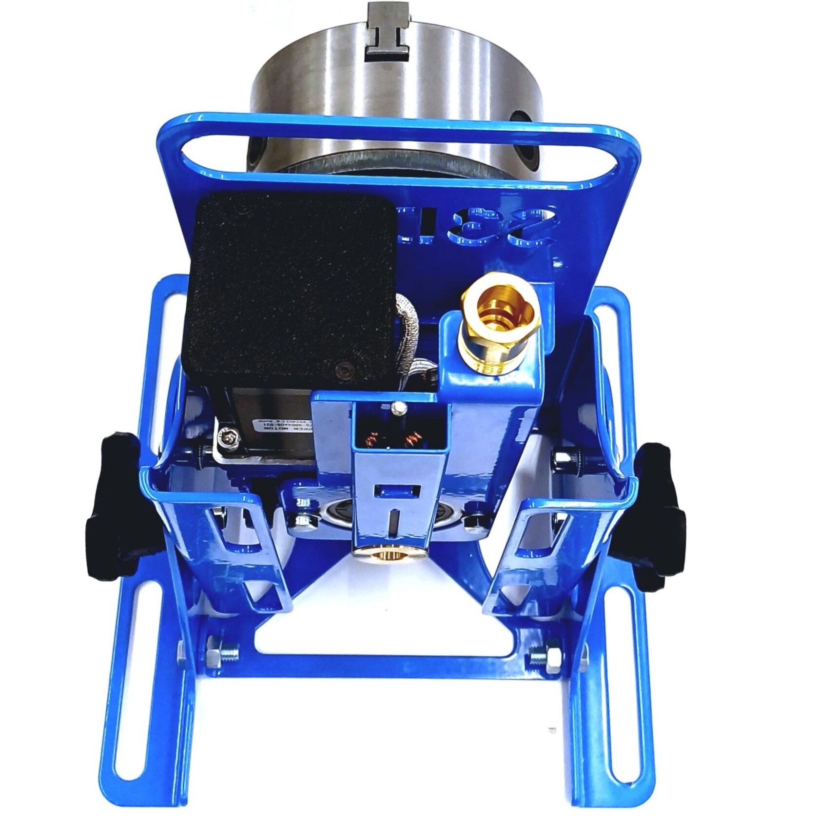 Центральная ось вращения сквозная c внутренним диаметром ~30мм. Может использоваться для организации поддува инертными газами или для сварки тонких труб или прутков.